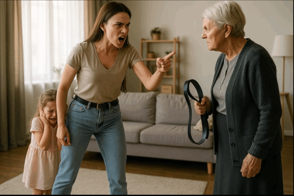 À ce moment, la porte d’entrée s’ouvrit brusquement. Daniel entra, épuisé, la tête baissée, mais se figea instantanément en voyant la scène : les enfants en larmes, Anna pâle et tremblante, sa mère tenant une ceinture.