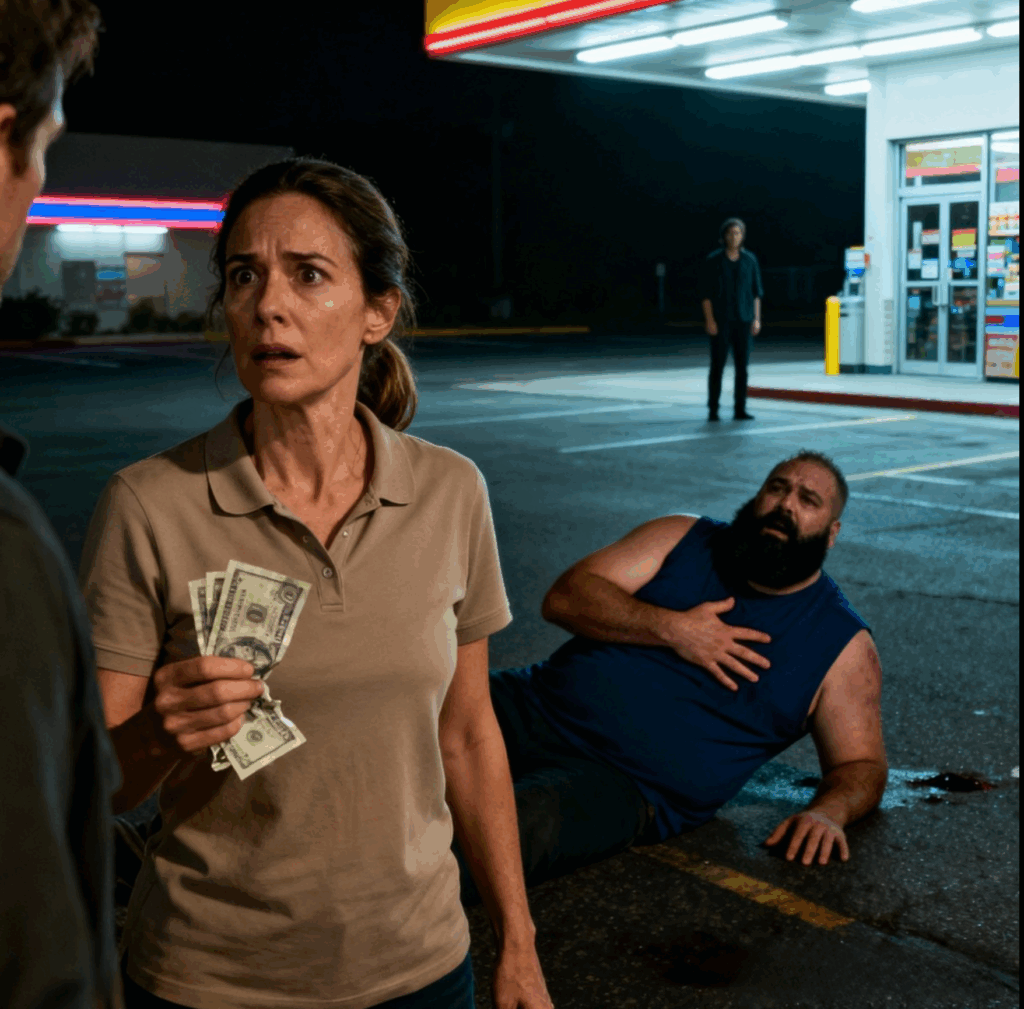 Elle se tenait sous les lumières fluorescentes vacillantes d’un parking presque vide, regardant les huit euros froissés dans sa main — son dernier argent, destiné au petit-déjeuner de sa fille. Puis elle entendit un son glaçant : un homme suffoquait, cherchant désespérément à respirer.