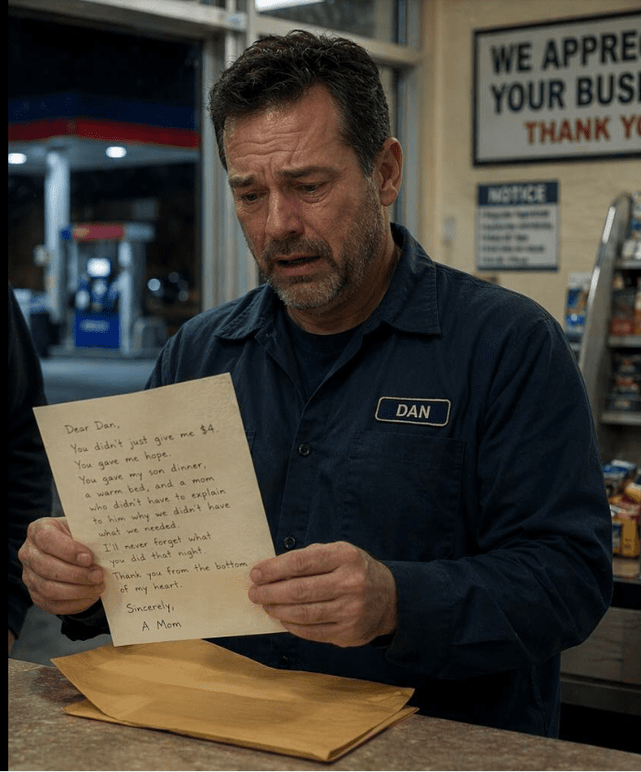J’ai donné 4 dollars à une mère fatiguée dans une station-service – une semaine plus tard, une enveloppe est arrivée pour moi au travail.