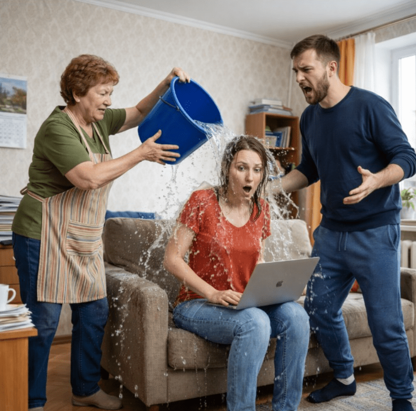 J’étais assise sur le canapé, serrant contre moi mon MacBook encore en état de marche. Mes cheveux mouillés collaient à mes joues, l’eau dégoulinait de mon menton, et mes vêtements alourdis me glaçaient la peau. Lentement, j’ai levé les yeux vers l’écran.