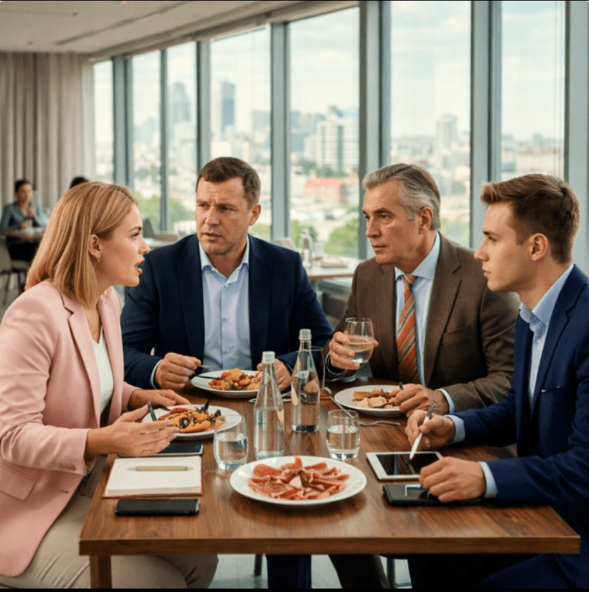 Valeria s’assit, posa le carnet devant elle… et resta silencieuse.La réunion commença.Roman parlait avec assurance — du moins, le croyait-il. Son anglais était hésitant, ses phrases parfois maladroites. Les Espagnols écoutaient attentivement.