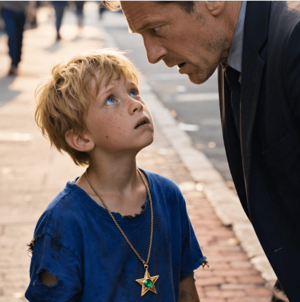 Puis, un jour… tout a changé.Au bord d’une rue très fréquentée, Thomas remarqua un garçon sale et pieds nus, recroquevillé sur le trottoir, tenant un sac plastique froissé. À première vue, rien d’inhabituel — jusqu’à ce que le regard de Thomas se pose sur le cou de l’enfant.