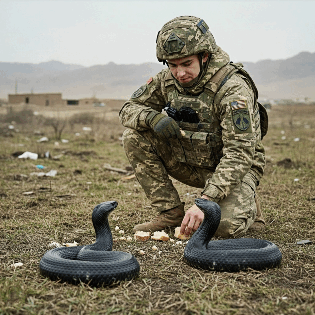 La gratitude, semble-t-il, n’a pas de frontières entre les espèces. Le soldat nourrissait les serpents pour le plaisir… Il ne savait pas ce que le destin lui réservait ce jour-là.