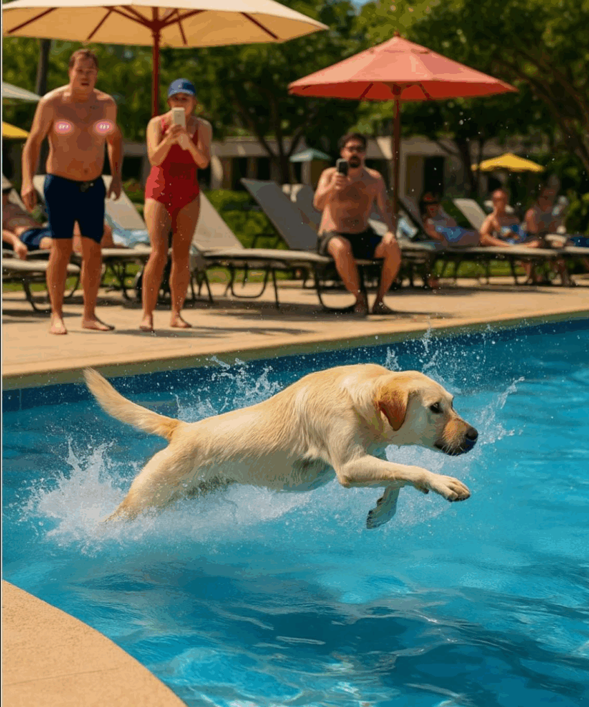 Les touristes étaient agacés lorsqu’un chien a plongé dans la piscine… jusqu’à ce qu’ils voient ce qu’il avait dans la gueule.