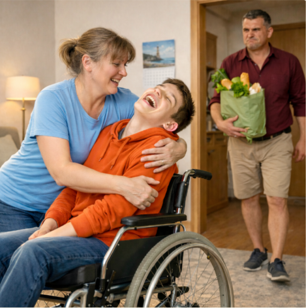 tenant Alexeï haut au-dessus de son fauteuil roulant comme s’il était léger comme une plume. Elle le faisait tournoyer, frappant du pied en rythme avec la radio, tandis que son rire éclatait dans la pièce comme une inondation. Alexeï renversa la tête en arrière,