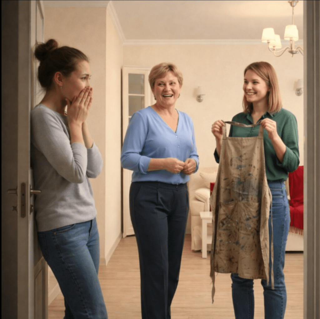 Ma sœur a éclaté de rire bruyamment :— J’ai déjà pris l’ancien tablier du grand-père ! Je l’ai volontairement barbouillé de peinture et d’huile de machine.— Parfait ! — rit maman. — « Nous lui remettons le tablier sale. » Ce sera idéal pour Júlia ! Les invités vont tomber par terre de rire. Elle se présente toujours à nos réceptions avec ce jean.