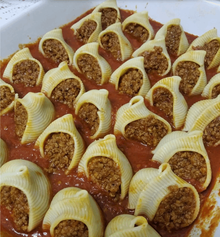 Gefüllte Muschelnudeln mit Hackfleisch und Tomatensoße