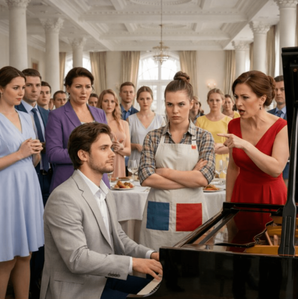 À côté, adossé négligemment au dossier d’un banc, se tenait Róman — le propriétaire de la plus grande chaîne de centres commerciaux de la ville. Une main effleurait lentement les touches, tandis qu’Inga, star de la vie mondaine locale, regardait Jaroszlava avec une évidente désapprobation.