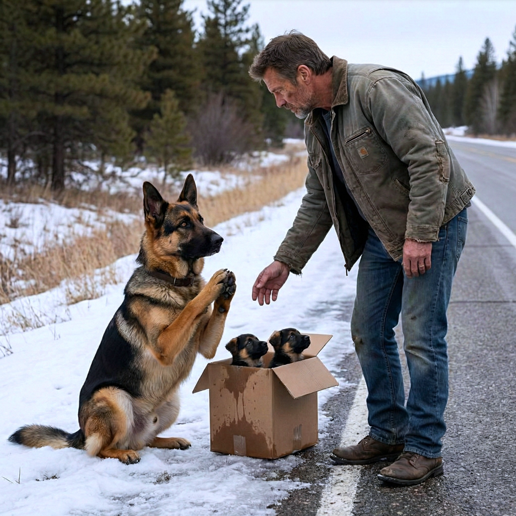 Pourtant, le destin a d’autres plans pour lui un matin d’hiver glacial.Au bord de la route, Marcus aperçoit quelque chose qui le force à freiner : un berger allemand affamé, assis immobile, presque en position de prière, comme s’il attendait quelque chose qui n’arrivera jamais.