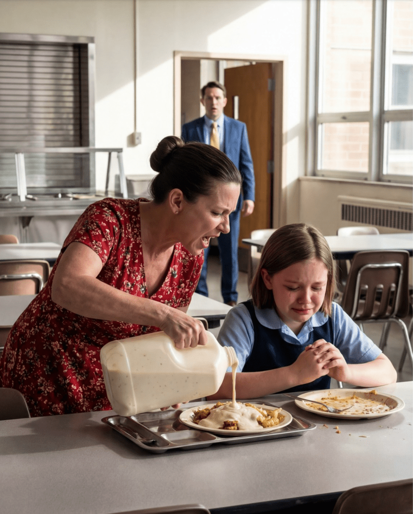 Alors que la cafétéria bourdonnait de rires et de discussions, Emma était forcée de s’asseoir à une table près de la poubelle. Vanessa lui confisquait son repas pour le remplacer par des restes.« Tu n’apprécies pas ce qu’on te donne, » murmura Vanessa une fois, son sourire tranchant comme un couteau. « Ça t’apprendra le respect. »